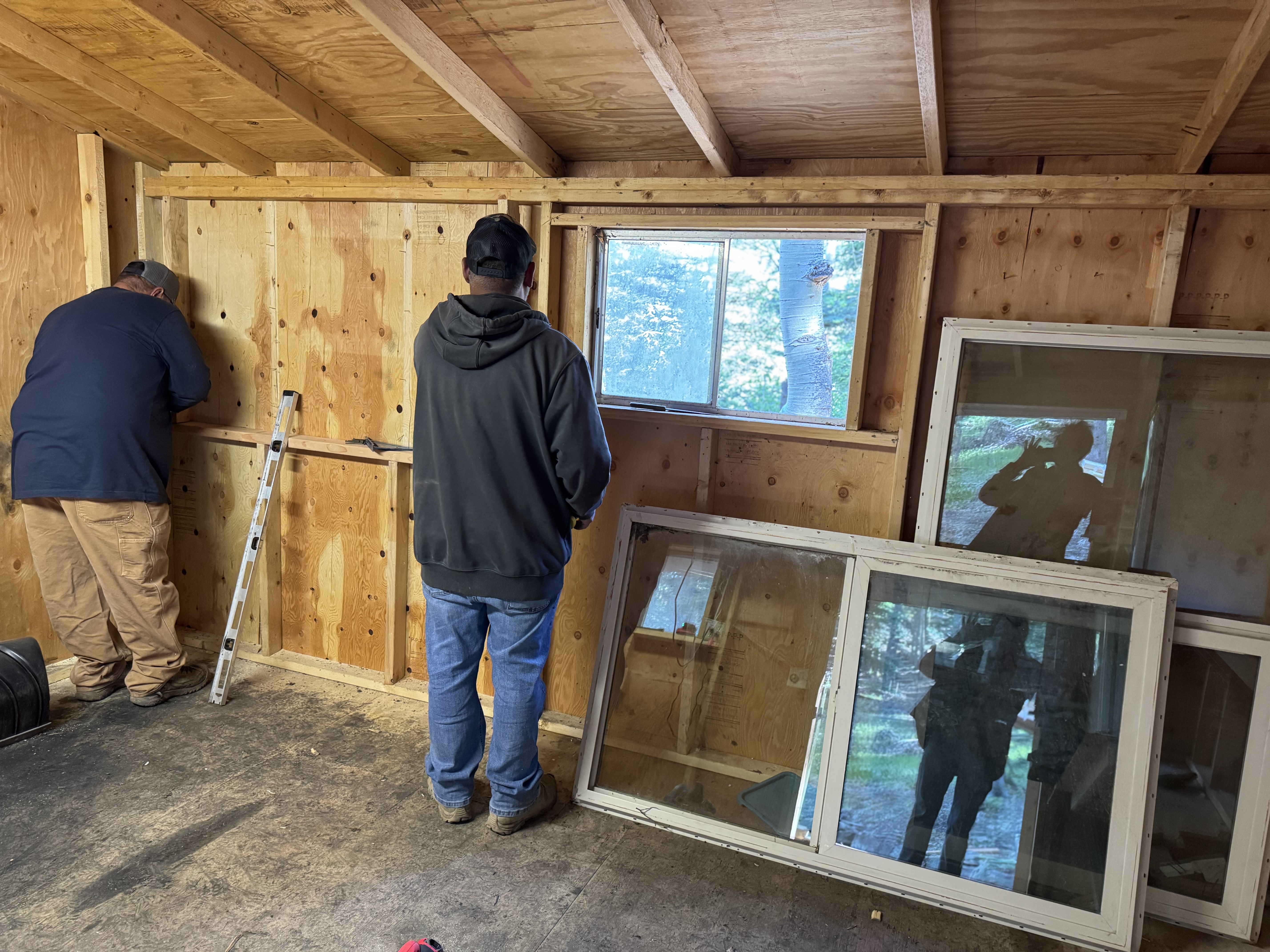 Windows and the door were repurposed from our Crestview Cabin remodel.